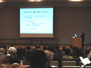 基調講演「食品添加物のリスク評価」では、食品安全委員会委員の長尾拓氏が、食品添加物の摂取許容量などについて解説。食品安全委員会では食のリスク分析を国際基準をベースに行なっている。